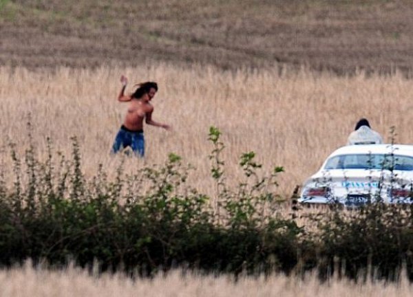 Увидев Рианну посередине поля, местные водители останавливали машины, чтобы поглазеть на полуобнаженную певицу, на проходящей рядом дороге образовалась пробка.