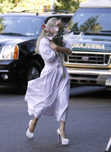 Lady Gaga решила обойтись без экстраординарного наряда и оделась достаточно сдержанно – в длинное молочное платье и неброские туфли. В руках она несла букет цветов.